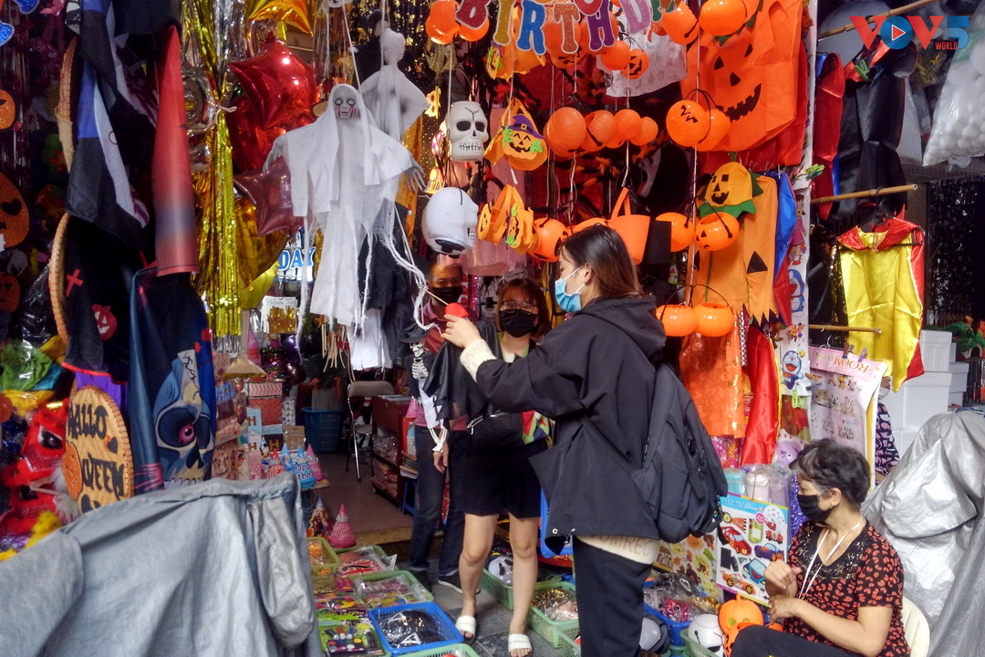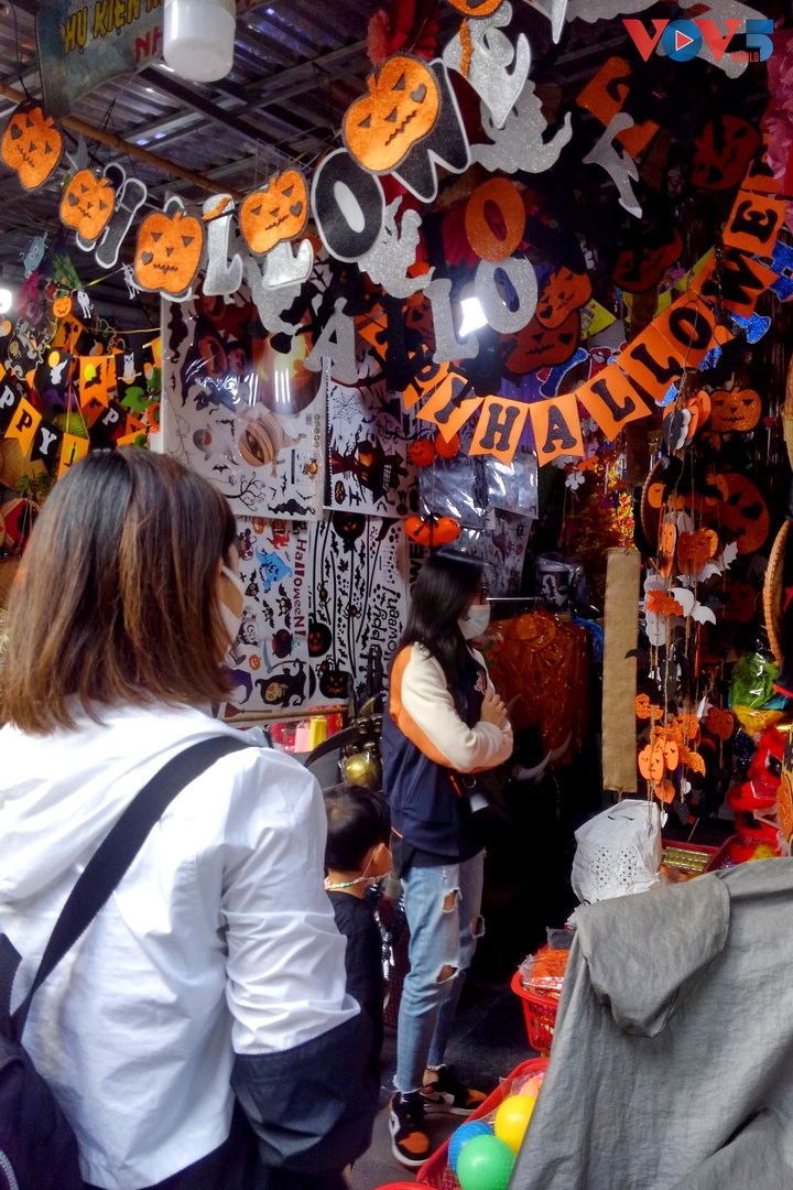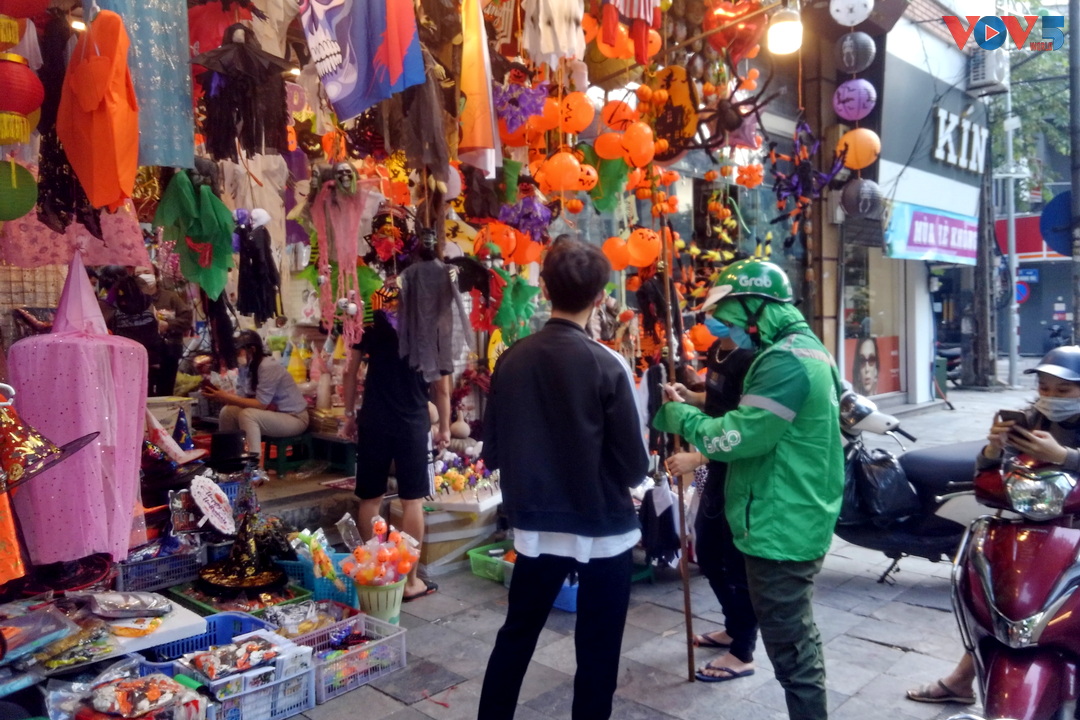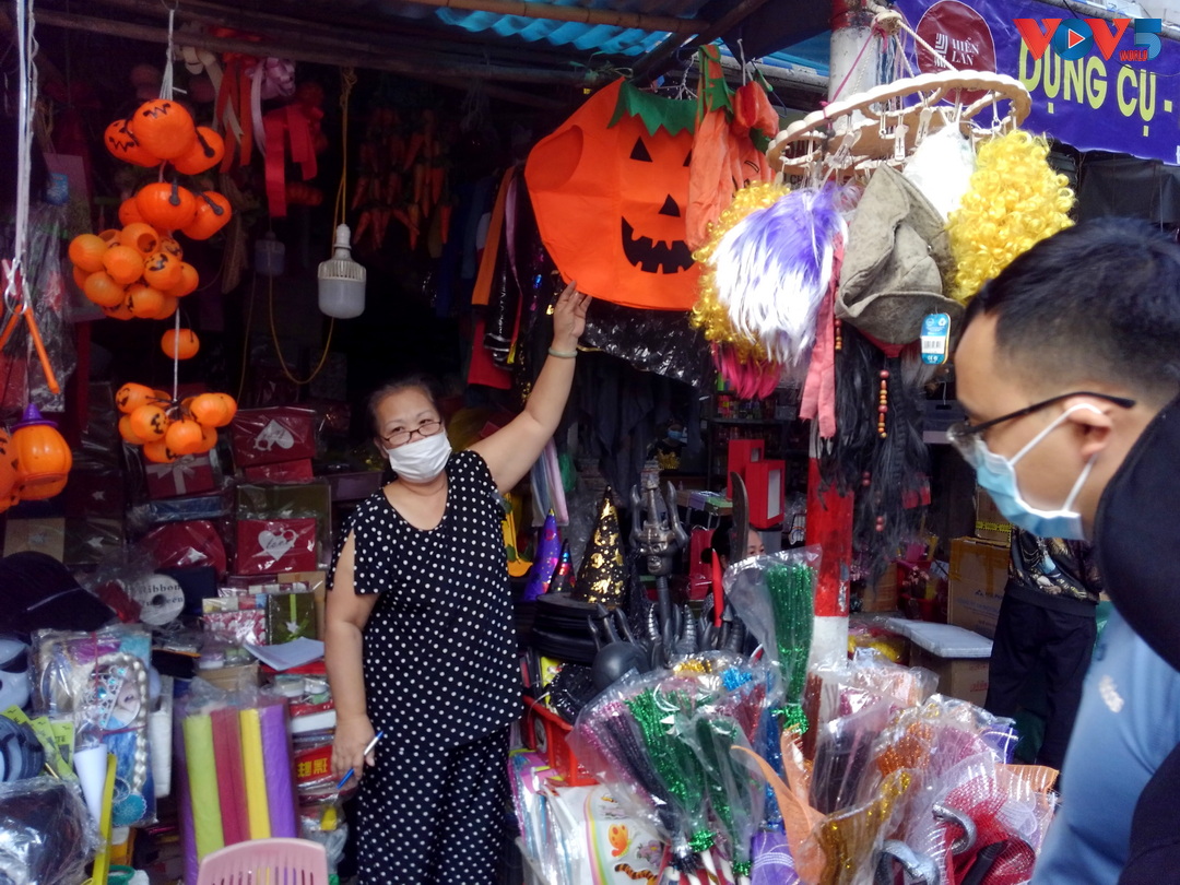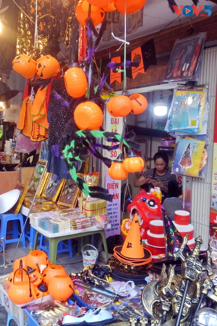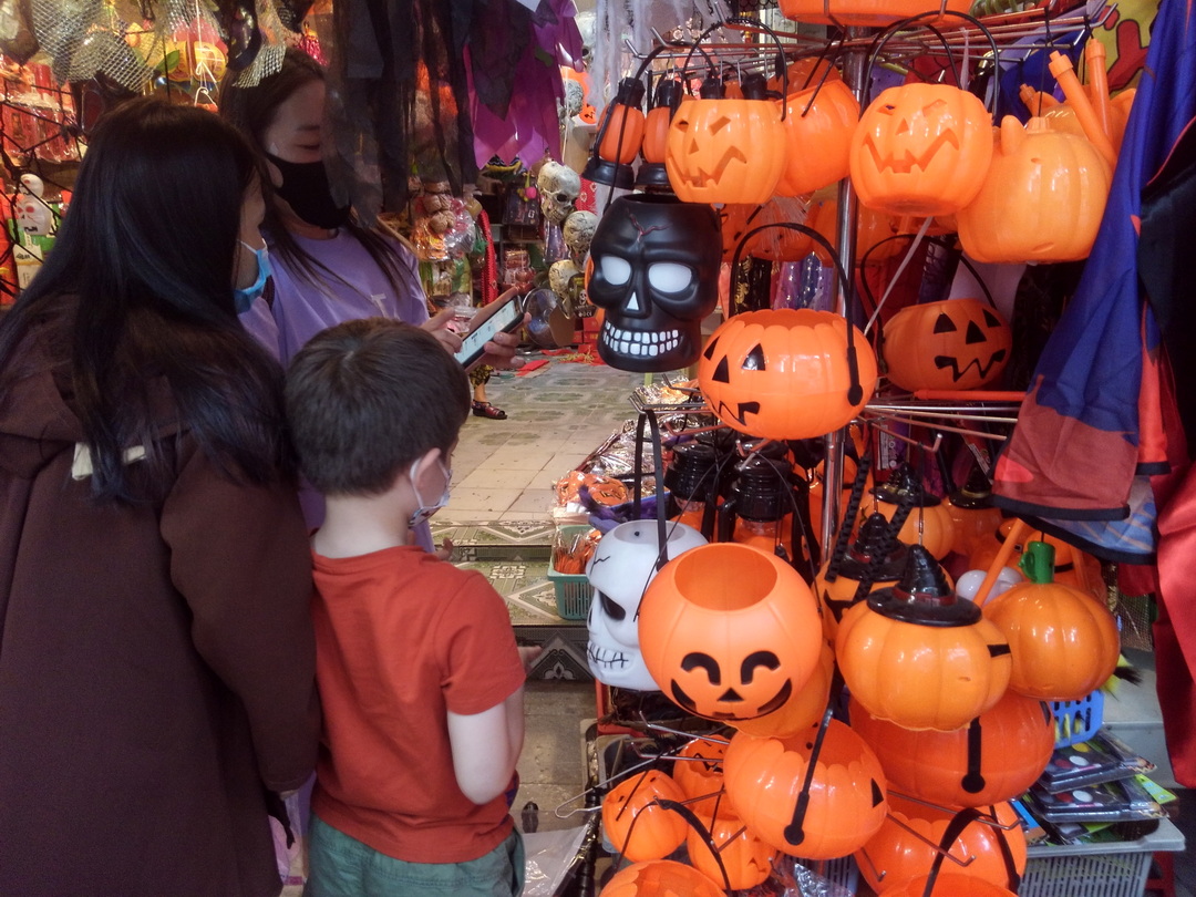| Nếu như các năm trước, cả một con phố dài đều rực rỡ sắc màu, đồ trang trí mùa Halloween thì năm nay, cả dãy phố chỉ có ít cửa hàng mở cửa bán đồ. |