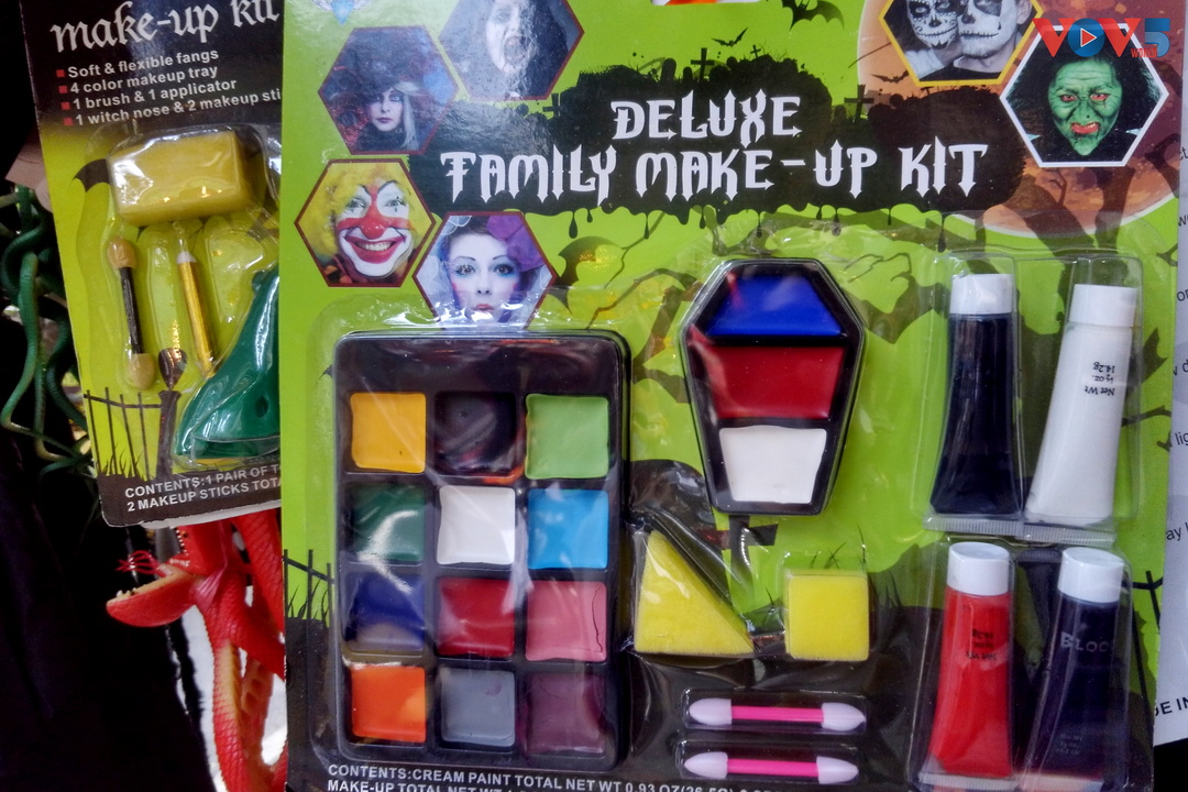 | Bên cạnh những bộ trang phục, năm nay còn xuất hiện thêm mặt hàng các bộ kit makeup để khách hàng có thể hóa trang thành cách nhân vật. |