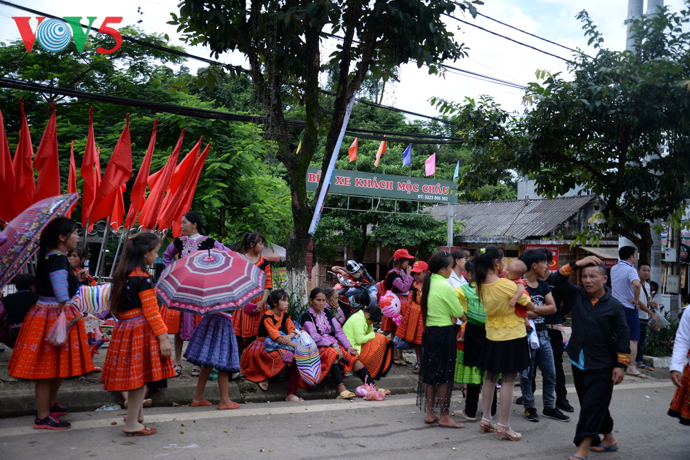 | Từ cuối tháng 8 đầu tháng 9, người dân các dân tộc Tây Bắc lại di chuyển tới Mộc Châu, đón Tết Độc Lập. |