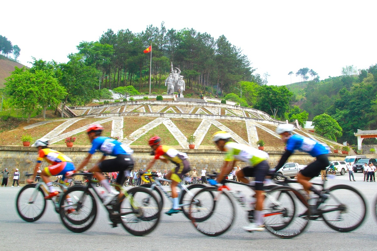 | Đua xe đạp qua Khu di tích lịch sử Ngã ba Cò Nòi, huyện Mai Sơn. |