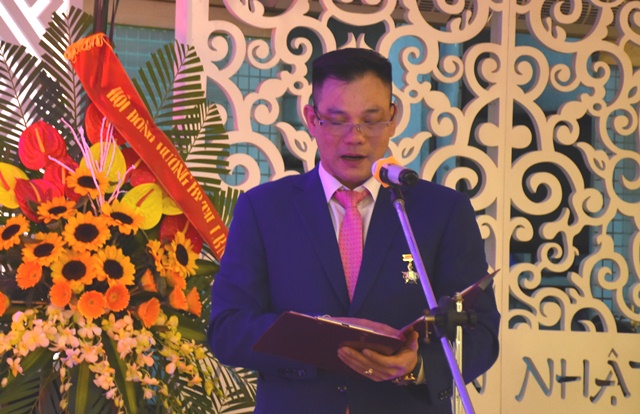 | Ông Nguyễn Ngọc Cương, ban liên lạc kiều bào Hải Phòng thăm Trường Sa năm 2016 giới thiệu chương trình và mục đích buổi gặp mặt. |