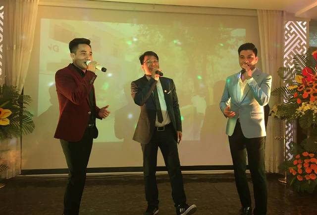 | Kiều bào và các thành viên trong đoàn sôi nổi tham gia các tiết mục văn nghệ với các bài hát về Trường Sa. |