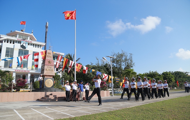 Lễ chào cờ và duyệt đội ngũ tại cột mốc chủ quyền đảo Song Tử Tây