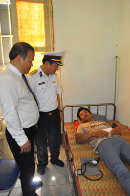 Đoàn thăm tặng quà cho ngư dân đang điều trị tại trạm xá đảo Sinh Tồn |