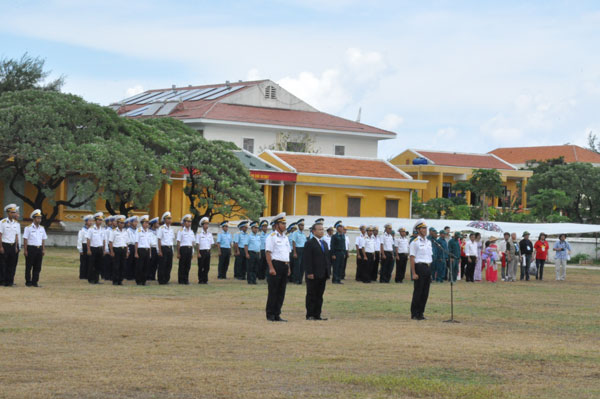 Đoàn công tác thực hiện nghi thức chào cờ trang trọng tại đảo Song Tử Tây