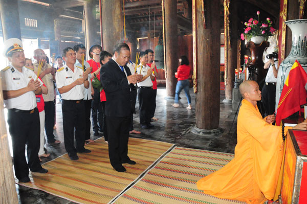 Đoàn dâng hương tại chùa trên đảo Song Tử Tây