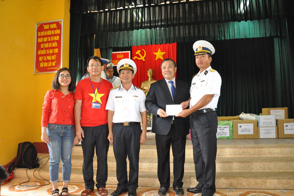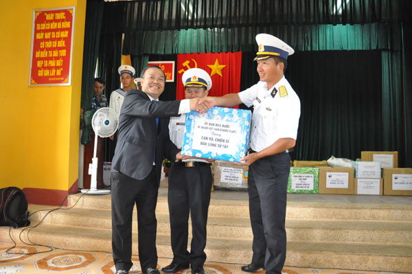 Nhân dịp này Thứ trưởng Bộ Ngoại giao, Chủ nhiệm Ủy ban Nhà nước về người Việt Nam ở nước ngoài Vũ Hồng Nam, Đại tá Nguyễn Thế Tốt – Phó Tham mưu trưởng Quân chủng Hải quân, đại diện bà con kiều bào, các cơ quan trong đoàn công tác đã tặng quà các lực lượng và nhân dân tại xã đảo.