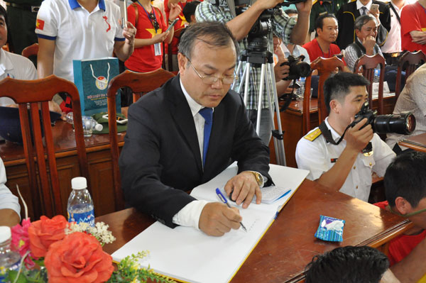 Thứ trưởng Vũ Hồng Nam ghi sổ lưu niệm tại đảo Song Tử Tây