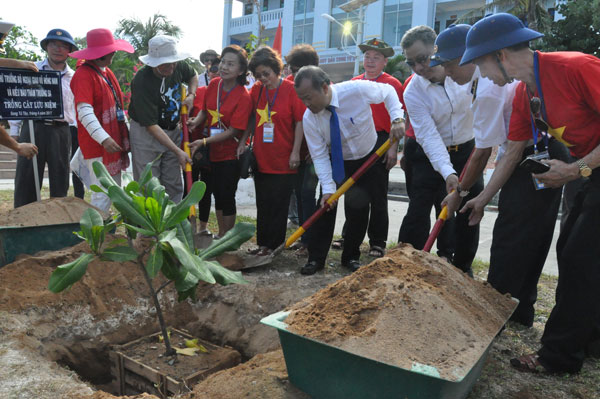 Thứ trưởng Vũ Hồng Nam và bà con kiều bào trồng cây lưu niệm tại đảo Song Tử Tây
