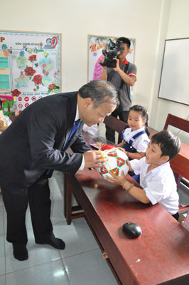 Thứ trưởng Vũ Hồng Nam tặng quà các cháu học sinh Trường Tiểu học xã Song Tử Tây |