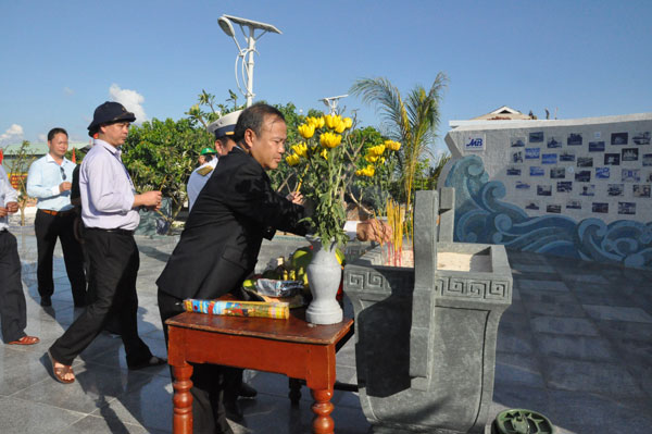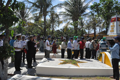 Đoàn thắp hương mộ các liệt sĩ tại đảo Nam Yết
