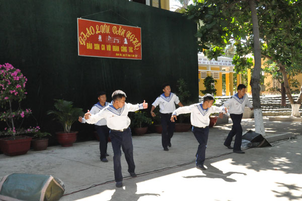Các chiến sĩ trên đảo Sơn Ca giao lưu văn nghệ với đoàn công tác
