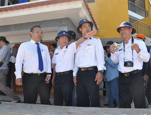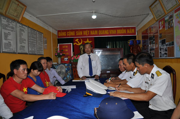 Đoàn nghe cán bộ chiến sĩ hải quân giới thiệu về vị trí đặc biệt của đảo Cô Lin, hòn đảo rất gần đảo Gạc Ma Trung Quốc chiếm đóng trái phép