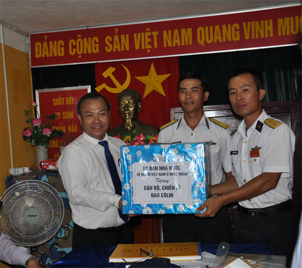 Thay mặt đoàn công tác, Thứ trưởng Vũ Hồng Nam và các cơ quan trong nước cùng bà con kiều bào đã tặng những phần quà hết sức ý nghĩa cho các cán bộ, chiến sĩ và nhân dân trên đảo.