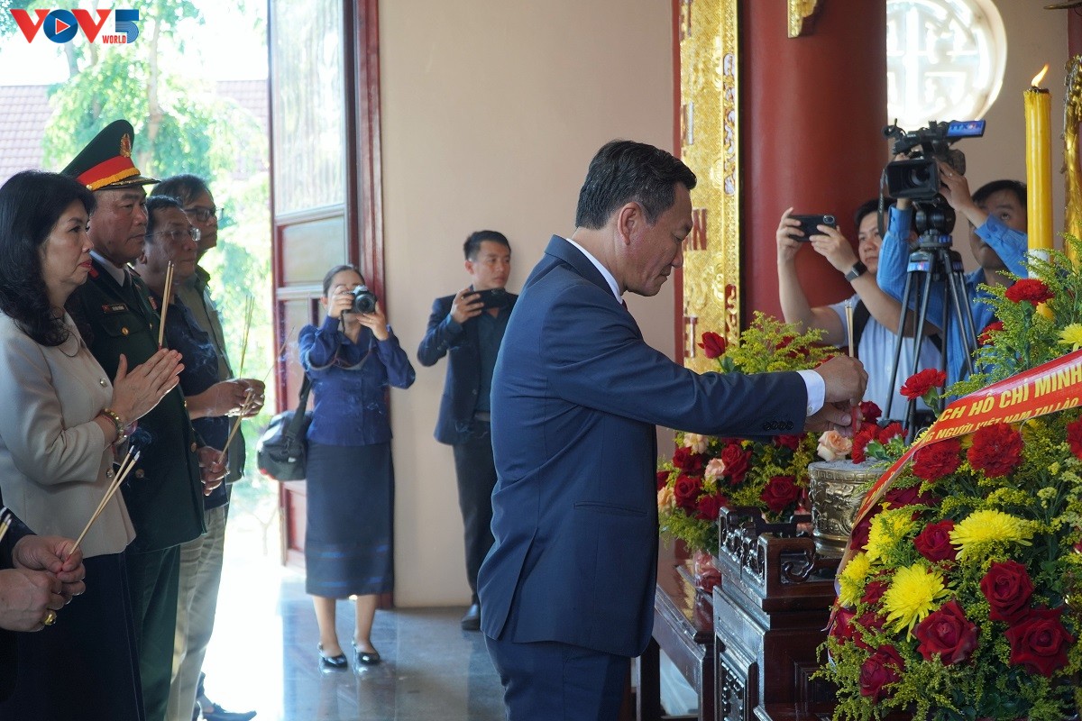 Đông đảo Cộng đồng người Việt Nam tại tỉnh Khammouane nói riêng và tại Lào nói chung dâng hương tại Khu lưu niệm Chủ tịch Hồ Chí Minh nhân ngày sinh của Người. Ảnh: PV/VOV – Vientiane |