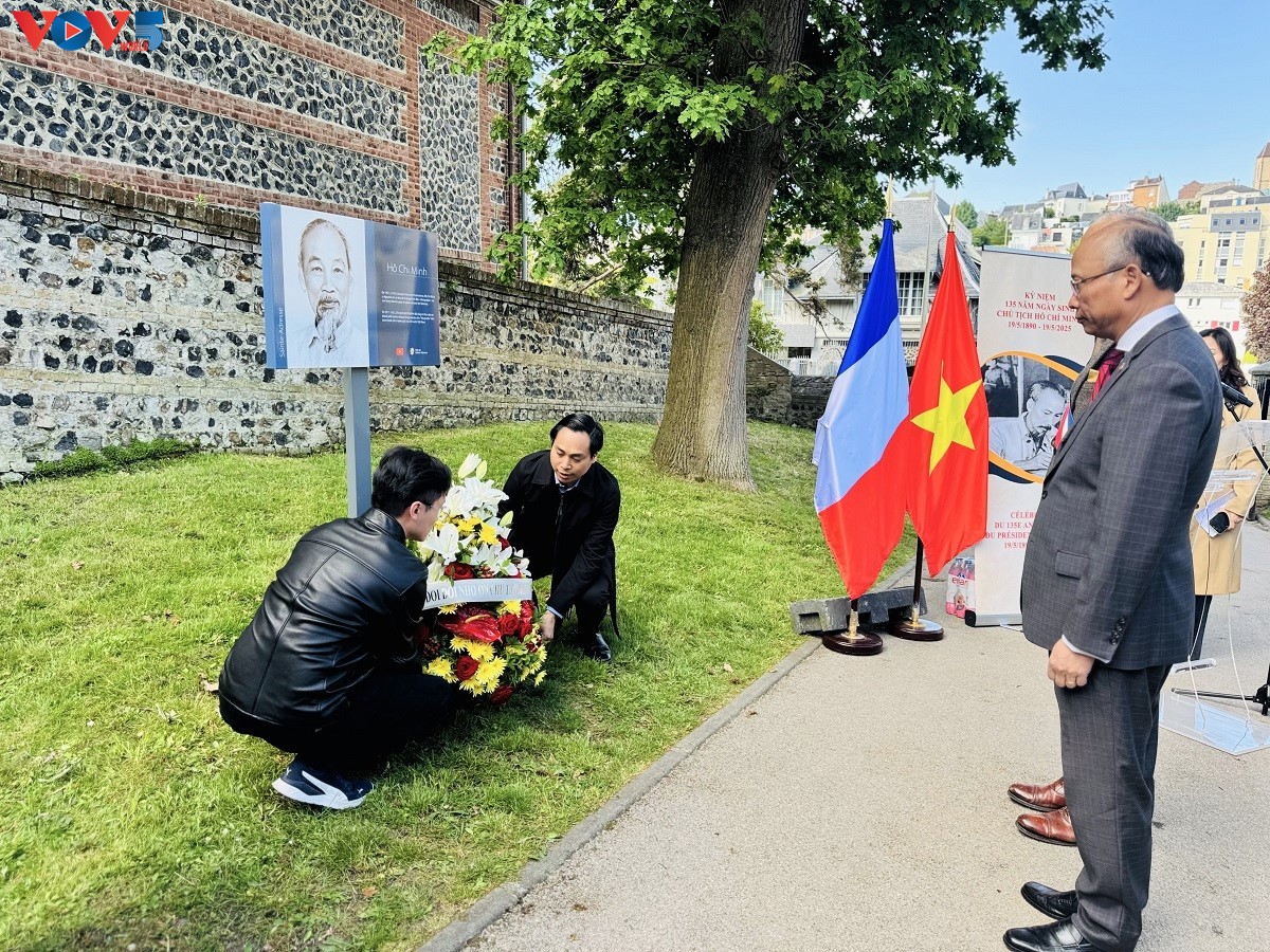 Nằm trong chuỗi các sự kiện kỷ niệm 135 ngày sinh của Chủ tịch Hồ Chí Minh (19/05/1890-19/05/2025), ngày 16/05, Đại sứ quán Việt Nam tại Pháp, phối hợp cùng chính quyền thành phố Sainte-Adresse tổ chức lễ dâng hoa tưởng niệm Người tại biển kỷ niệm mang tên Chủ tịch Hồ Chí Minh nơi đây. Ảnh: Anh Tuấn/VOV – Paris |