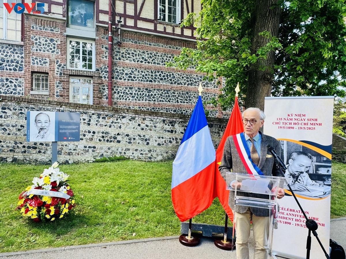 Phó thị trưởng thành phố Sainte-Adresse, Luc Lefèvre khẳng định tầm quan trọng của lễ kỷ niệm 135 năm ngày sinh của Chủ tịch Hồ Chí Minh, cũng như thời gian Người sinh sống và làm việc tại nơi đây vào năm 1911. Ảnh: Anh Tuấn/VOV – Paris |