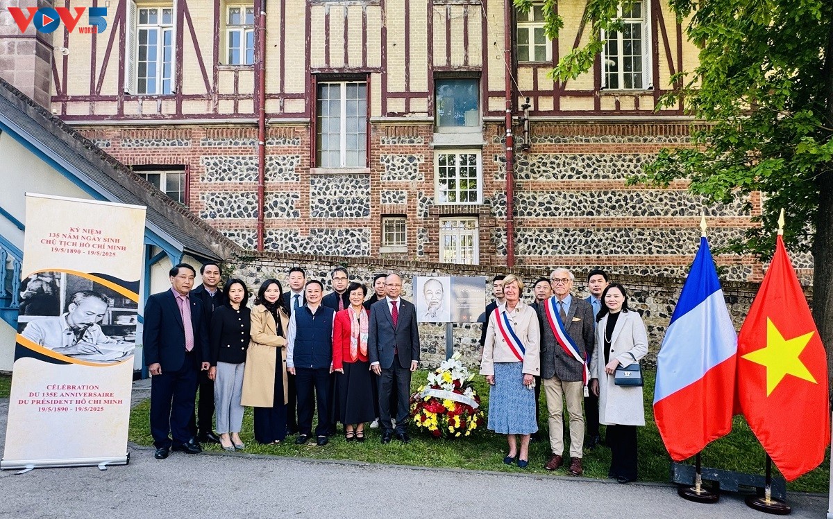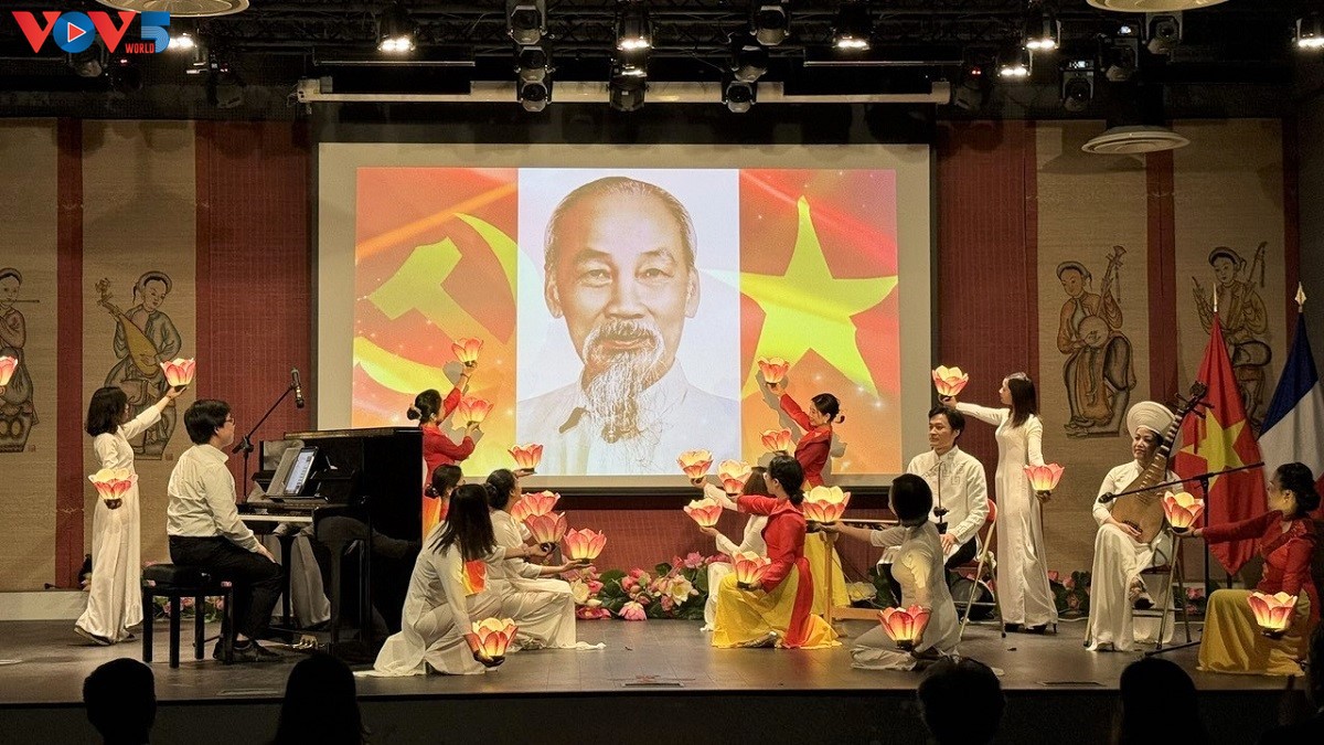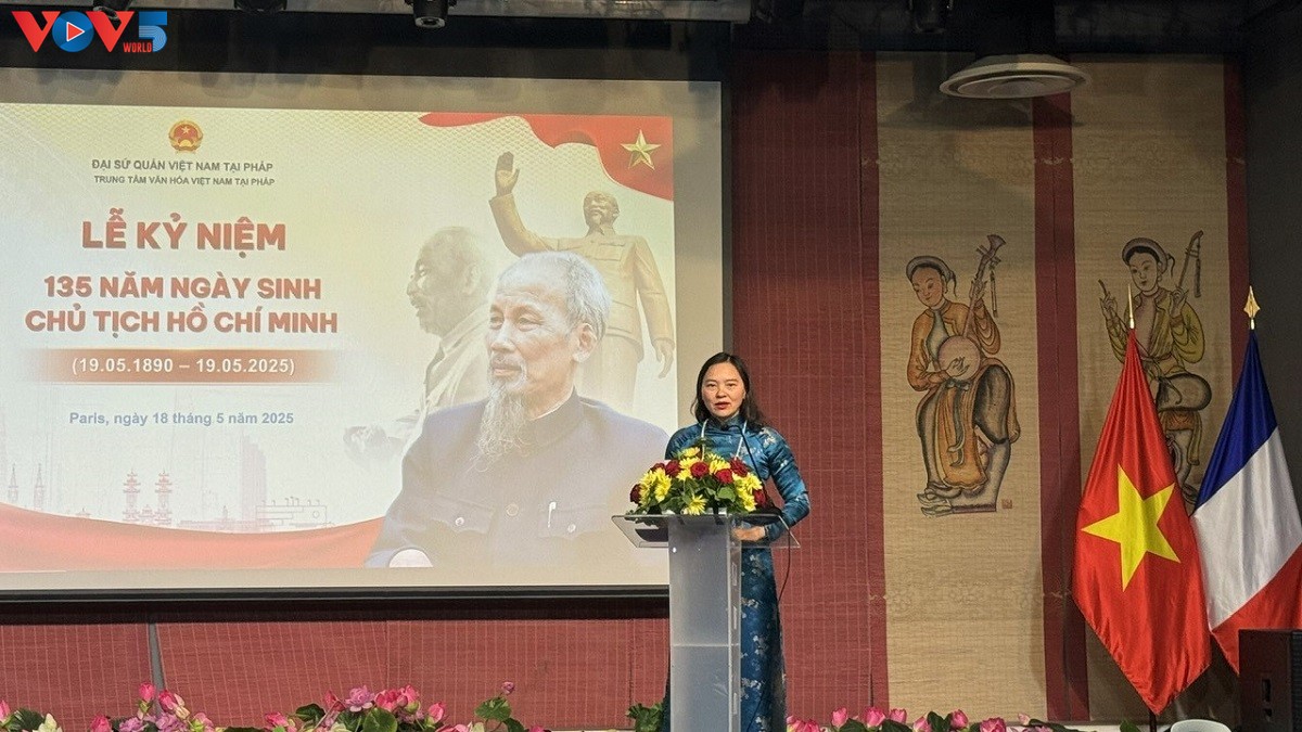 Theo dòng sự kiện, ngày 18/5, Đại sứ quán Việt Nam tại Pháp tổ chức Lễ kỷ niệm 135 ngày sinh Chủ tịch Hồ Chí Minh (19/5/1890 - 19/5/2025) tại Trung tâm văn hoá Việt Nam ở Thủ đô Paris. Ảnh: Anh Tuyển/VOV – Paris |