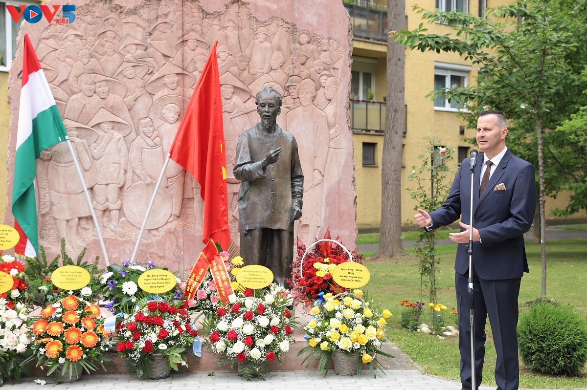Hòa chung không khí chào mừng kỷ niệm 135 năm ngày sinh Chủ tịch Hồ Chí Minh, Đại sứ quán Việt Nam tại Hungary đã phối hợp với chính quyền Thành phố Zalaegerszeg tổ chức lễ dâng hoa tại tượng đài Chủ tịch Hồ Chí Minh và Tọa đàm về tư tưởng của Chủ tịch Hồ Chí Minh về hòa bình, độc lập, tự do, hạnh phúc. Ảnh: Hải Đăng/VOV - Praha |