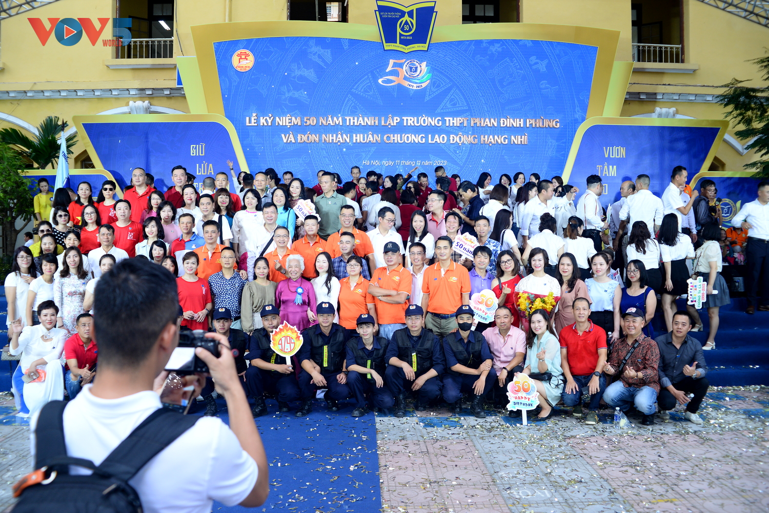 | Là sự kiện chính trong chuỗi hoạt động kỷ niệm 50 năm thành lập trường THPT Phan Đình Phùng, "Gala hội tụ" các thế hệ giáo viên và học sinh diễn ra ngày 11/11 đã thu hút hàng nghìn học sinh và thầy cô giáo cũ về thăm lại trường. |
