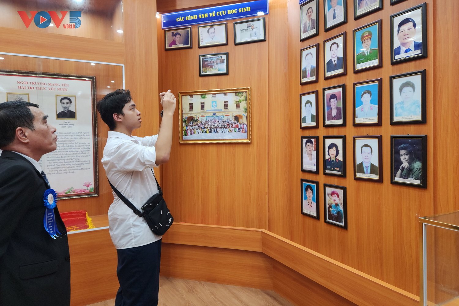 | Tại phòng truyền thống, danh sách giáo viên, học sinh, các kỷ vật như sổ lưu bút, album ảnh... đều được lưu trữ và trưng bày. |