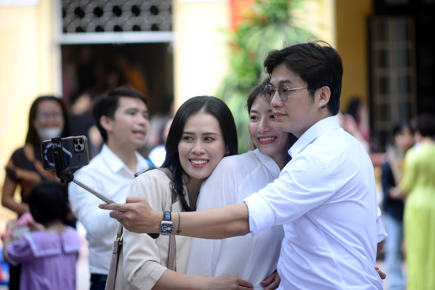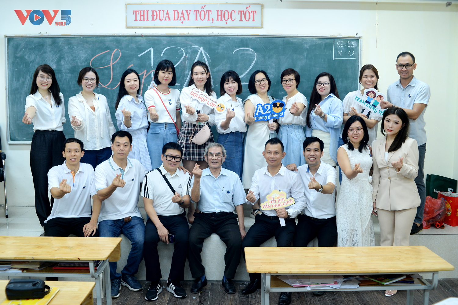 | Tập thể học sinh lớp 12N1 tuy mới tốt nghiệp năm 2022 nhưng hôm nay cũng hẹn nhau về tựu trường. |