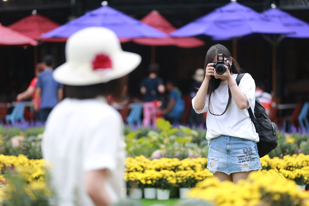 Thư Lê (du khách Hải Phòng) không ngừng check in với các tiểu cảnh, hào hứng chia sẻ: “Ngay từ Cổng thành tôi đã rất háo hức được tham gia lễ hội kì bí này, không đáng sợ như những lễ hội Halloween vẫn thường thấy, Halloween ở đây thật dễ thương. Tôi thích nhất khu nhà bí vì trông giống truyện cổ tích”.