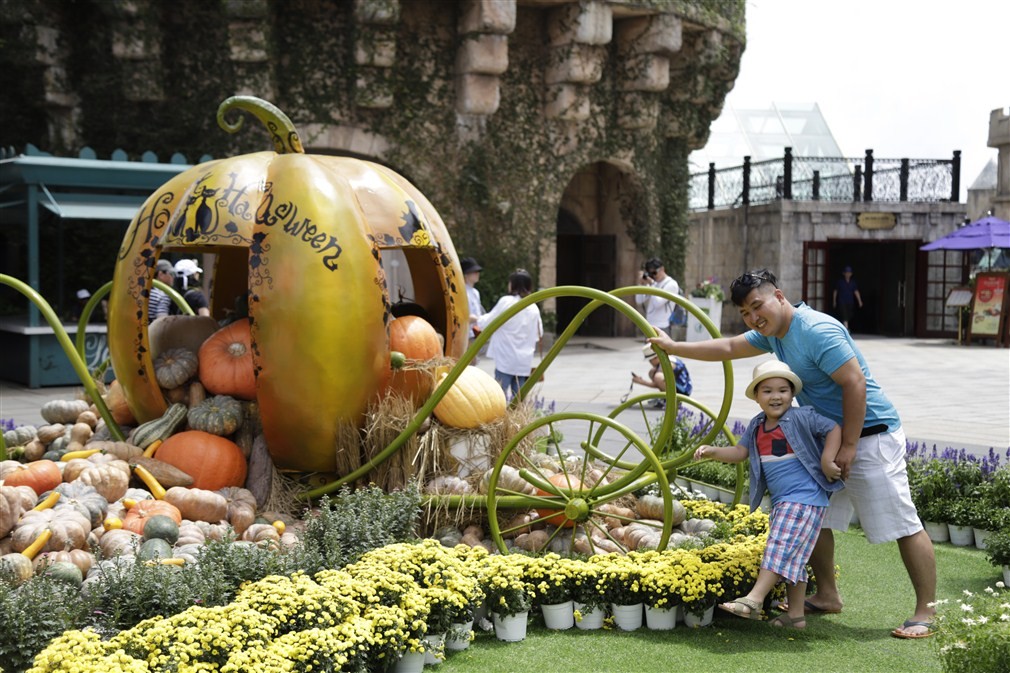 Cỗ xe bí khổng lồ của Lọ Lem, những ngôi nhà nhỏ lăn lóc bí ngô đủ hình thù, kích thước… rất nhiều tiểu cảnh dí dỏm, ngộ nghĩnh từ bí khiến du khách thích thú.
