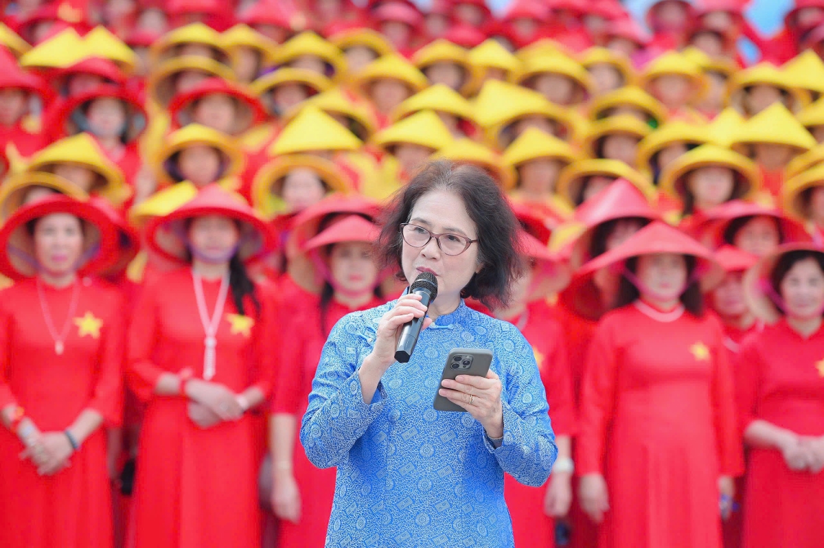 Bà Nguyễn Thị Thanh Tâm - Chủ tịch Câu lạc bộ Di sản áo dài Việt Nam, cho rằng sự kiện không chỉ truyền cảm hứng về tình yêu đất nước, mà còn lan toả tình yêu đối với tà áo dài. |