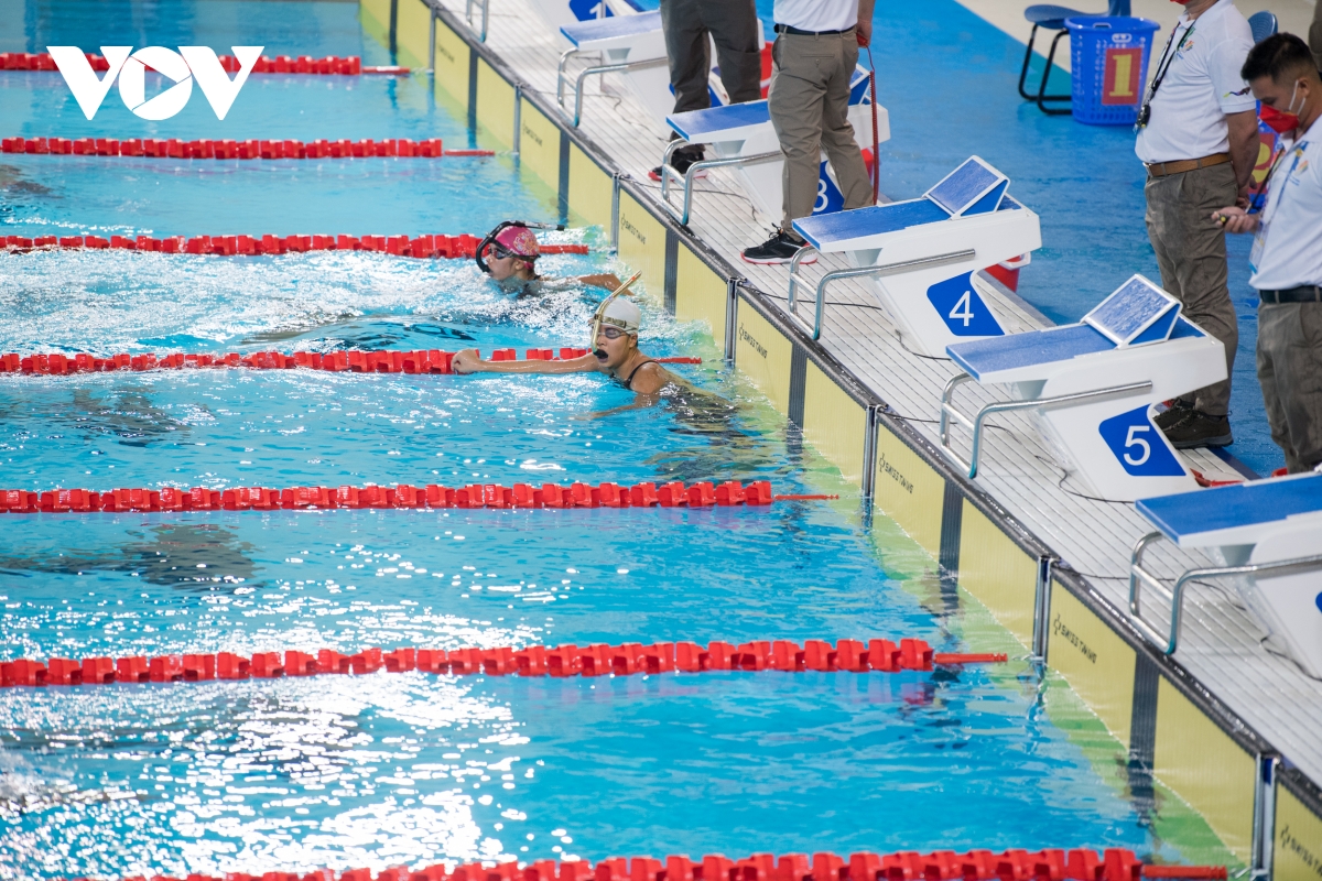 VĐV Phạm Thị Kim Thương giành huy chương vàng ở nội dung 800m vòi hơi chân vịt nữ với thành tích 7 phút 19 giây 18 phá kỷ lục SEA Games.