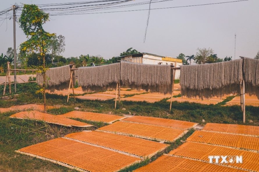 Nhắc đến làng Cự Đà là nghĩ ngay đến nghề làm miến dong truyền thống. Miến Cự Đà có một đặc điểm nổi bật đó là sợi miến thơm ngon, dai mềm, khi nấu lên vẫn giữ được độ giòn tự nhiên và mùi thơm đặc trưng. Ảnh: Vân Chi/TTXVN |