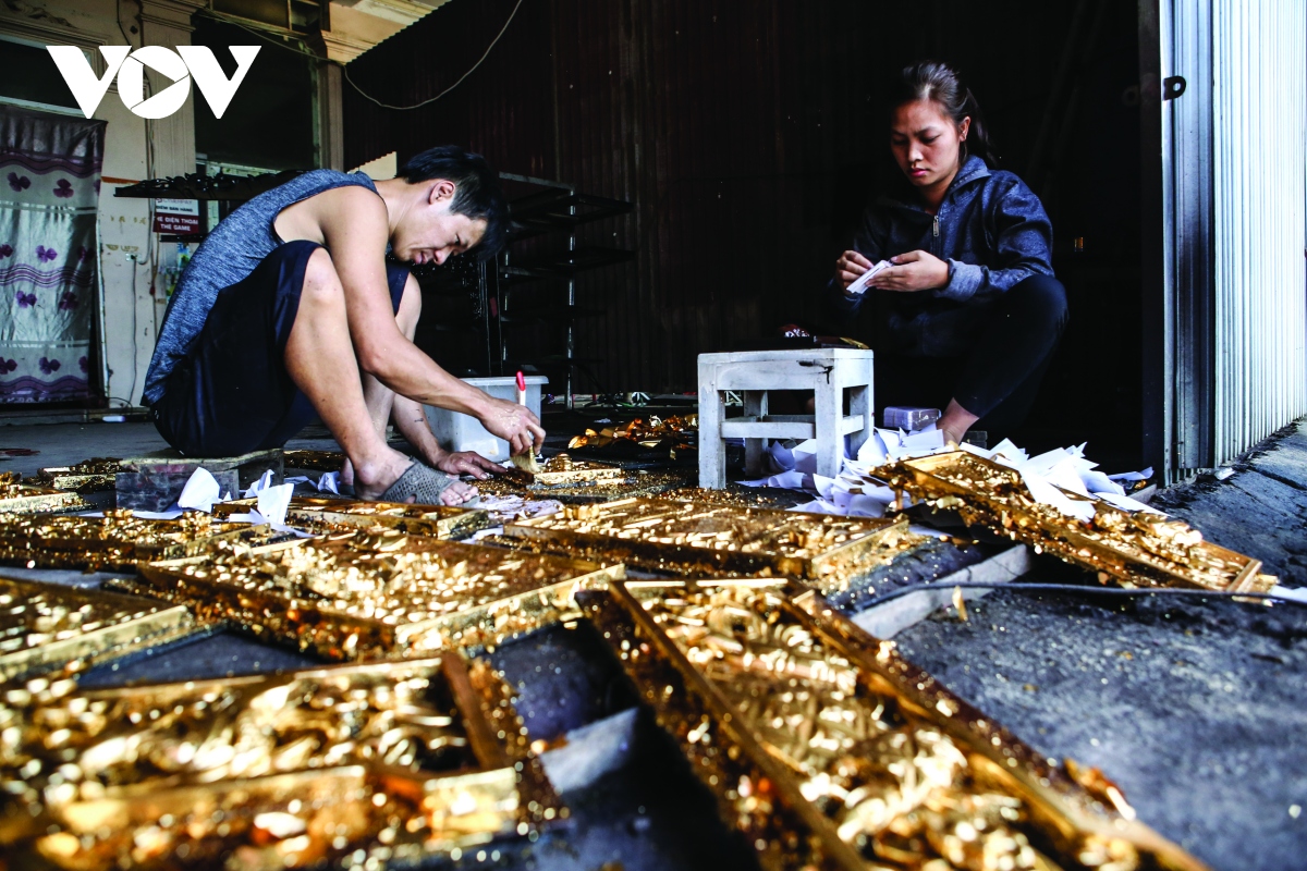 Nơi đây được ví như “thiên đường” về đồ thờ cúng hay đồ chạm khắc thủ công mỹ nghệ. Tất cả đều được sơn son, thếp vàng, thếp bạc một cách tỉ mỉ và công phu. |