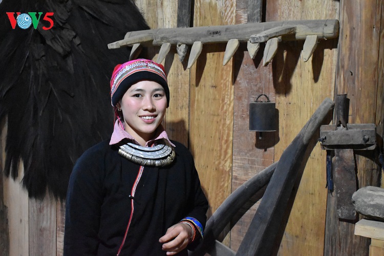 Lý Thị Pày, nhân viên của nhà người Dao giới thiệu về những dụng cụ được trưng bày trong bảo tàng.