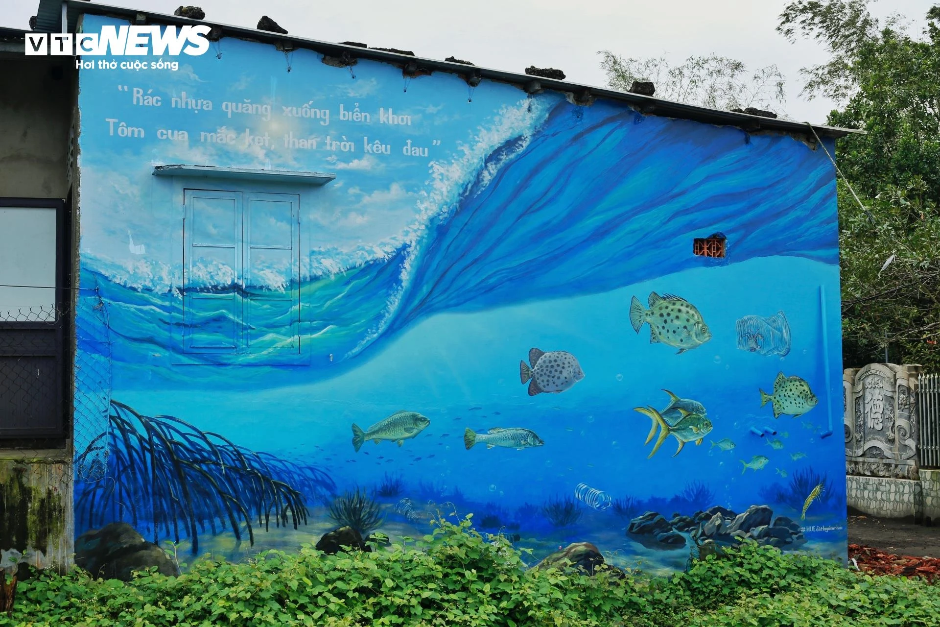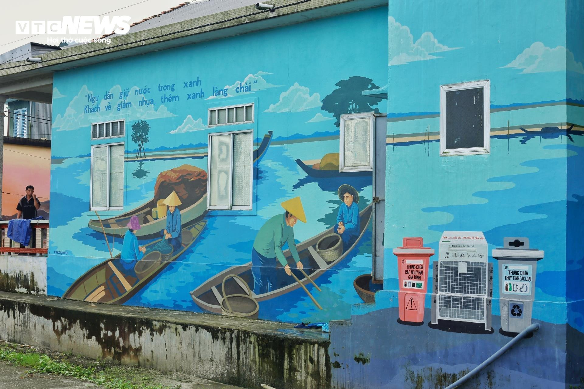 Thông điệp giảm rác thải nhựa trên các bức tranh bích hoạ ở làng du lịch nổi tiếng của Huế.