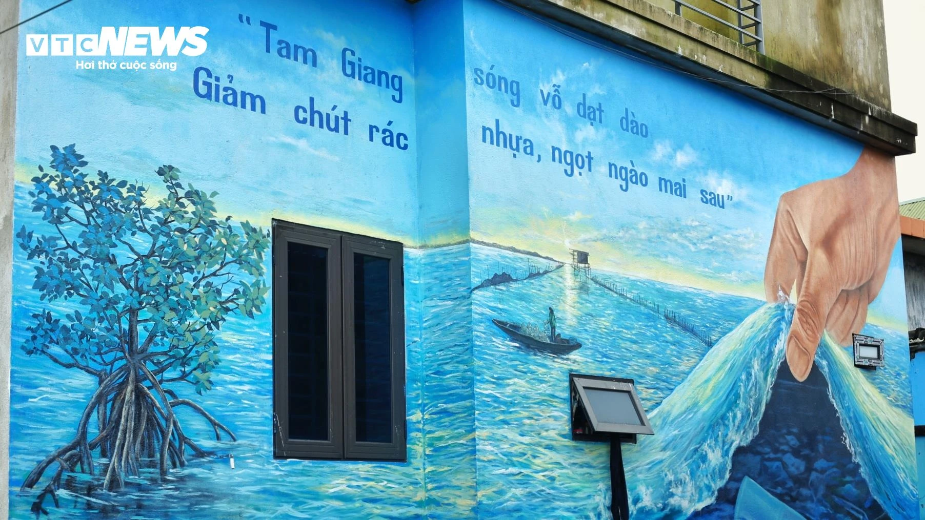 | Trên con đường du lịch hướng về Ngư Mỹ Thạnh, các hoạ sĩ trẻ, tình nguyện viên và người dân địa phương vẽ nên 10 bức tranh bích hoạ trên các tường nhà và gửi gắm vào đó những thông điệp bảo vệ môi trường, giảm rác thải nhựa. |