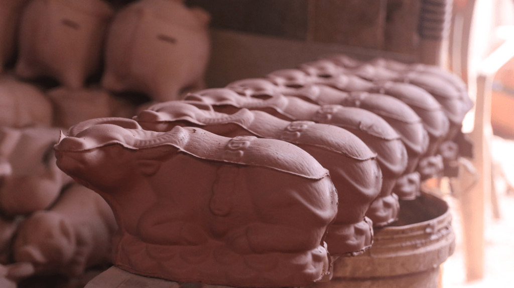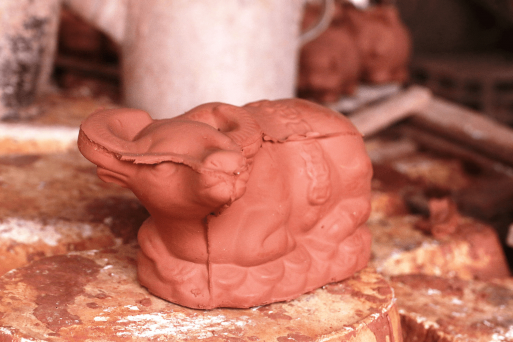 Một trong những sản phẩm của nghề gốm truyền thống ở vùng đất Lái Thiêu (thành phố Thuận An, tỉnh Bình Dương) là heo đất. Những năm gần đây, nhằm đáp ứng thị hiếu của người tiêu dùng, các hộ dân đã “cách tân” thay đổi con vật theo từng năm. Về sau, do quá trình đô thị hóa nên các lò nung ở Lái Thiêu được chuyển xuống hoạt động tại thị xã Tân Uyên (Bình Dương). Năm nay vùng gốm Tân Uyên bắt tay vào sản xuất "trâu vàng"