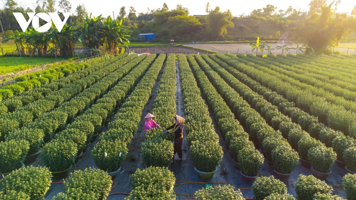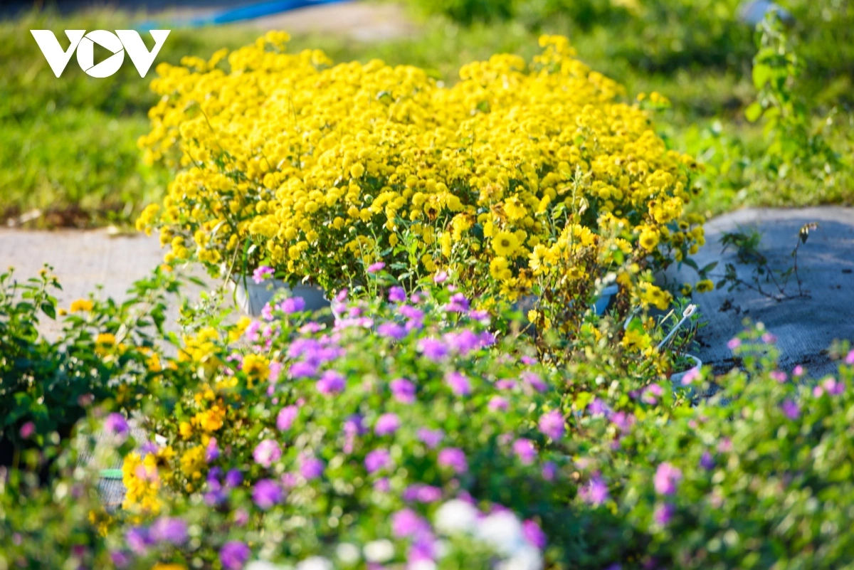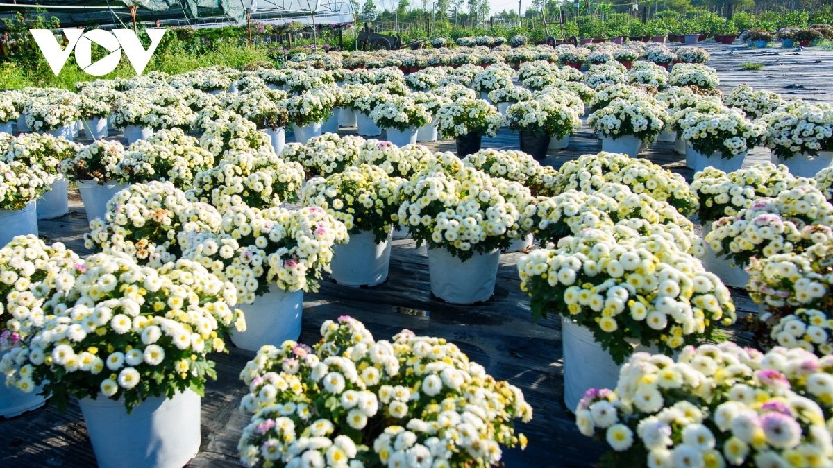 Hoa cúc Nhật cũng là loài hoa mới được bà con nơi đây trồng để phục vụ tết Giáp Thìn