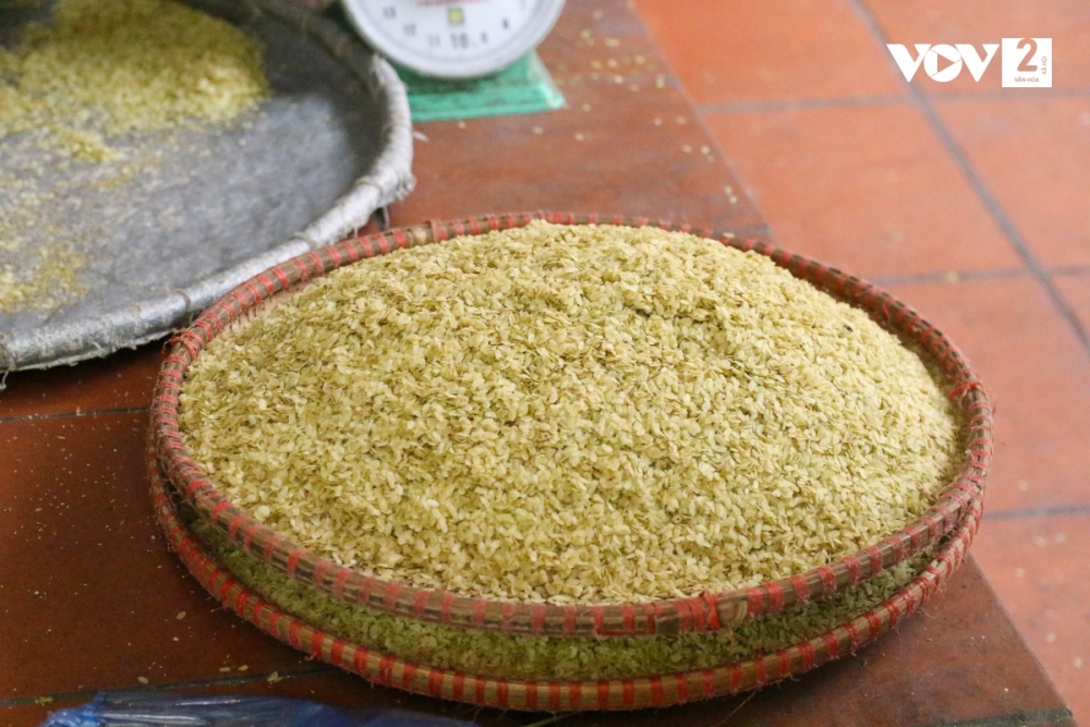 Lúa nếp non đem về rang chín rồi giã, sàng sảy nhiều lần.