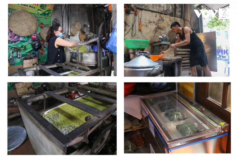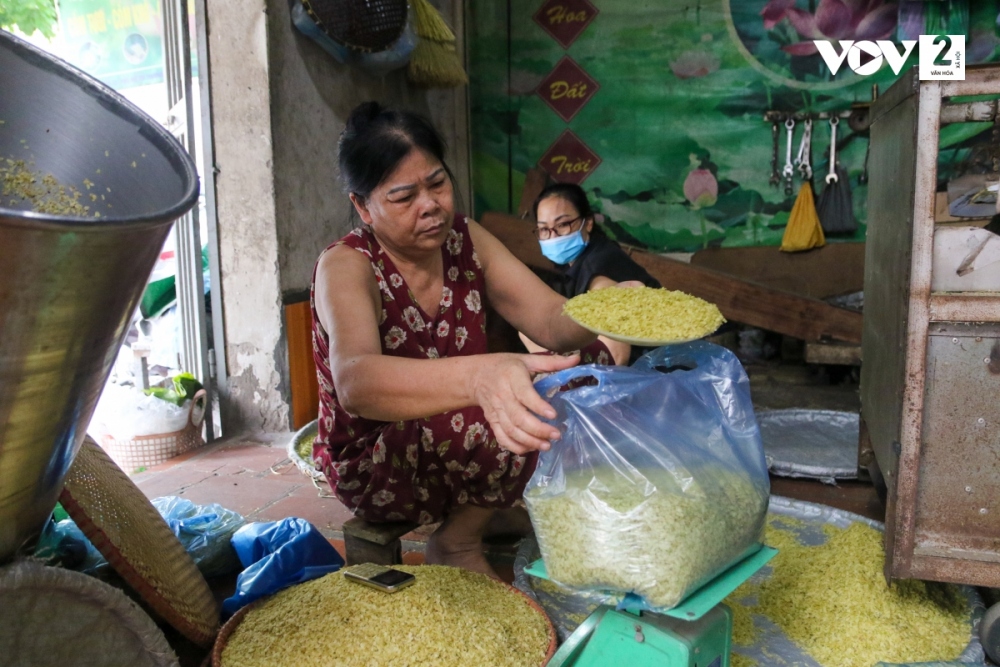 Đang là giai đoạn cao điểm sản xuất trong vụ mùa cốm lớn nhất của năm. Các hộ gia đình tất bật từ sáng sớm đến tận đêm khuya để kịp làm những mẻ cốm thơm dẻo phục vụ khách hàng.