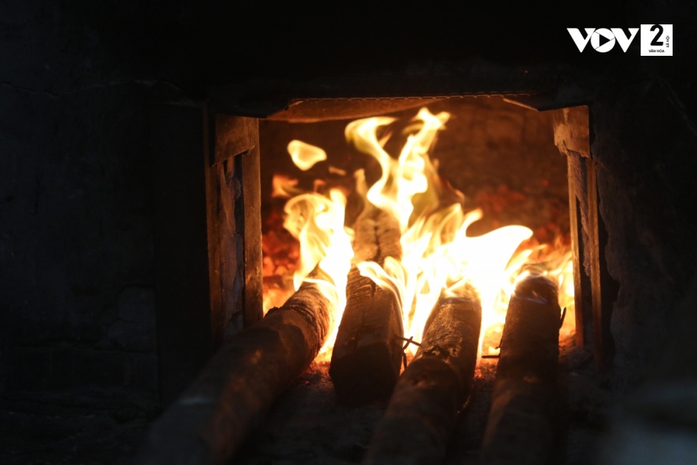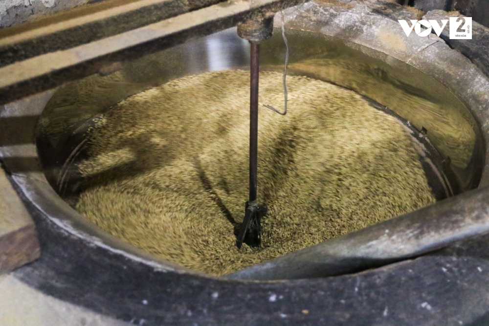 Công đoạn tiếp theo là rang cốm. Người dân trong làng đều dùng củi gỗ để rang chứ không dùng than, có như vậy cốm mới dậy mùi.