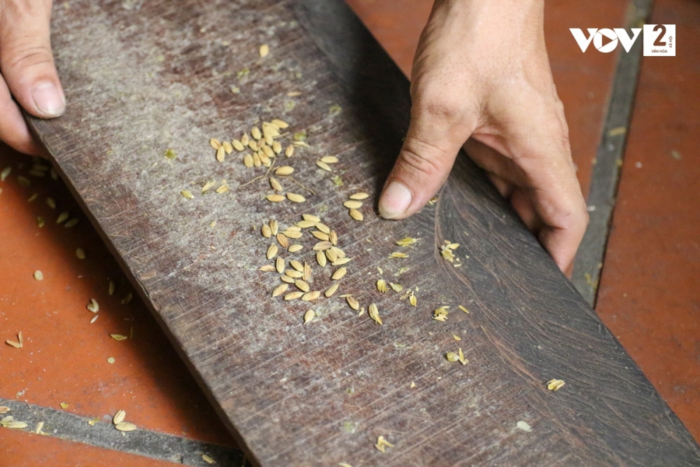 Công đoạn giã đòi hỏi hạt cốm vừa mỏng, vừa tơi, vẫn giữ nguyên hạt, tỷ lệ 10 kg thóc thì được 1,6 - 1,7 kg cốm.