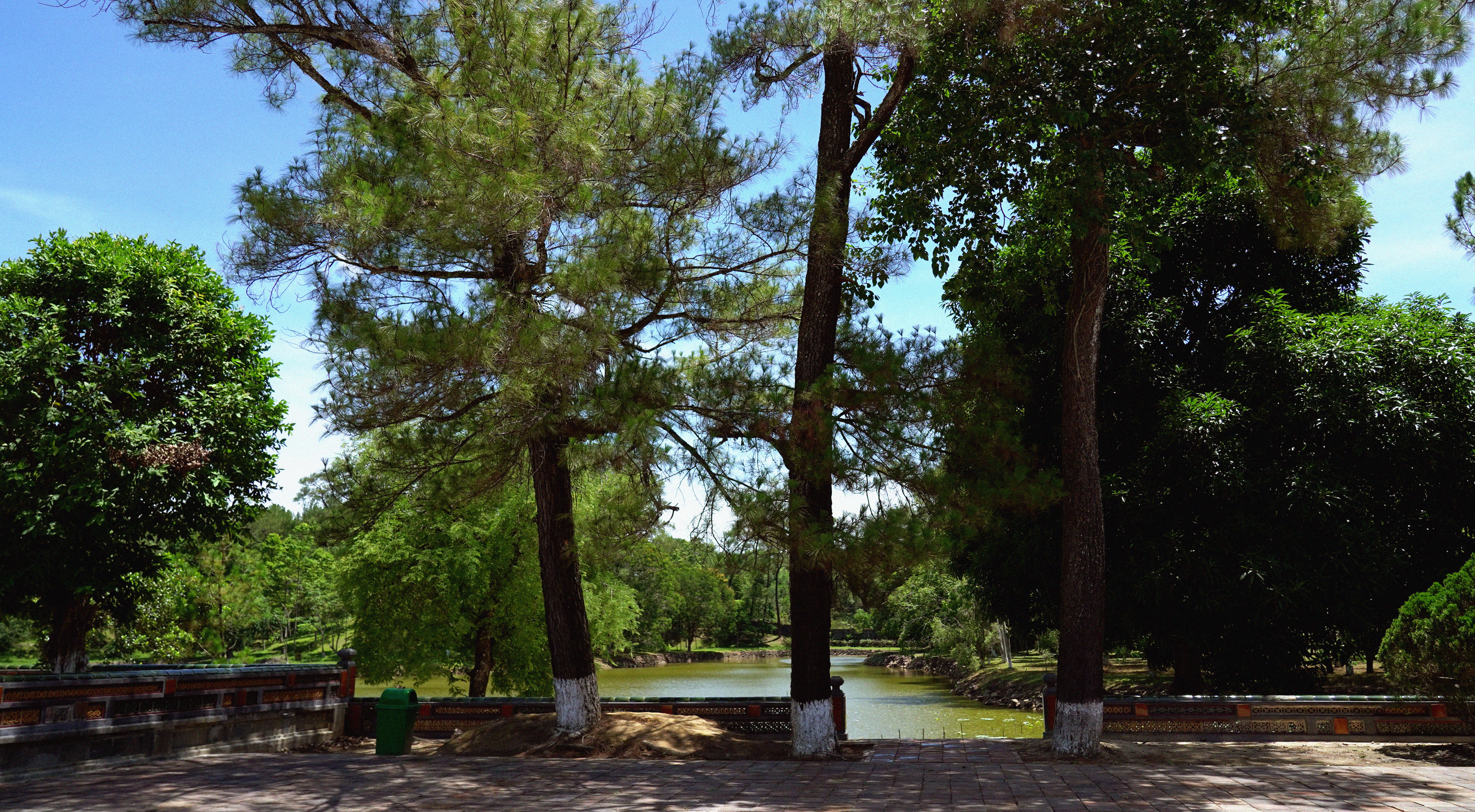 Lăng Minh Mạng được bao bọc bởi màu xanh của cây, cái yên ả tĩnh lặng của sông hồ, cái vững chãi của núi non.
