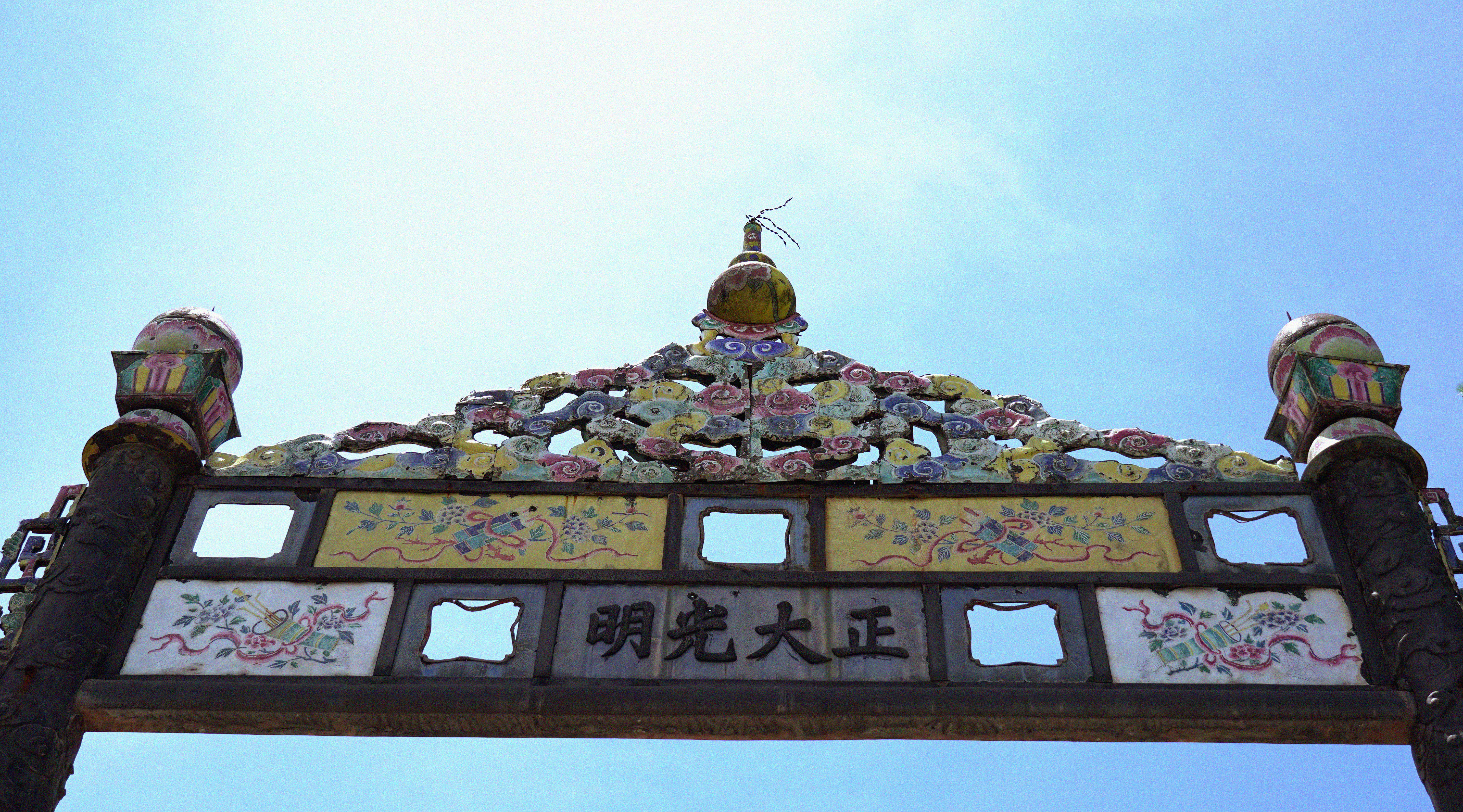 Dạng cổng tam quan với ba lối đi và được trang trí bởi nhiều họa tiết độc đáo và tinh tế như cá chép hóa rồng.