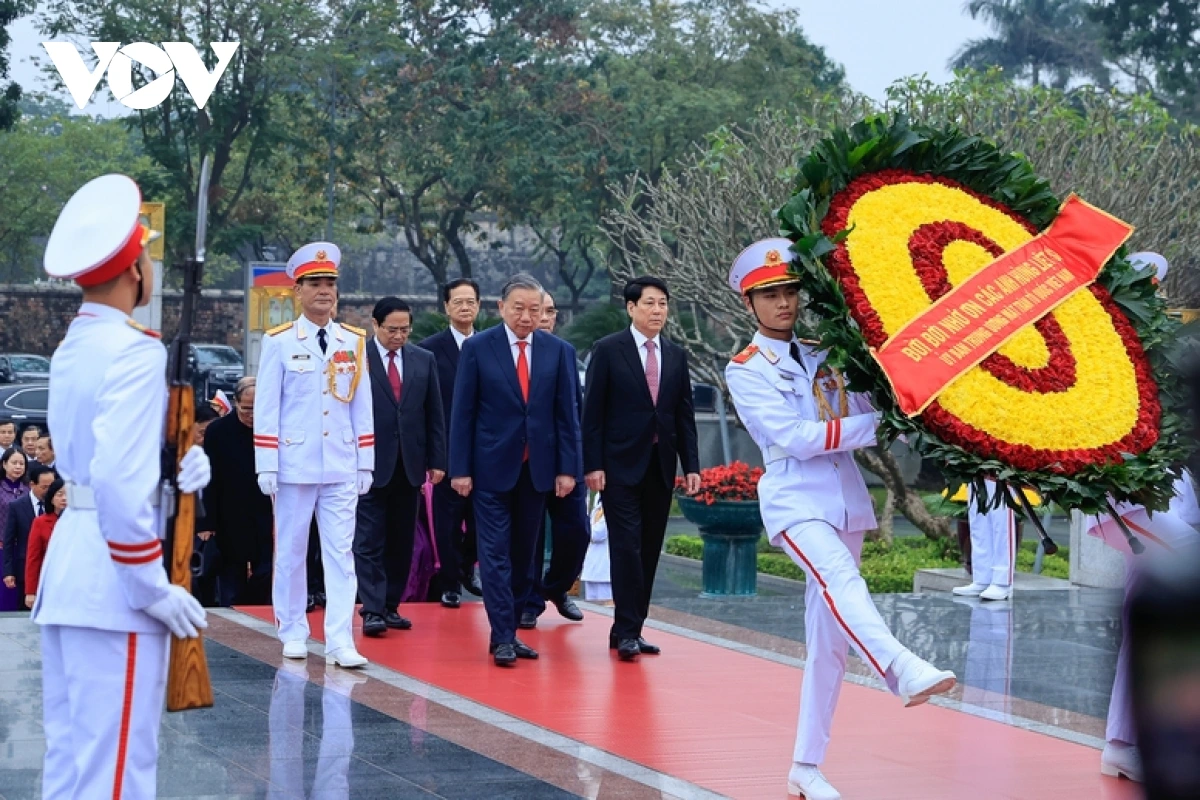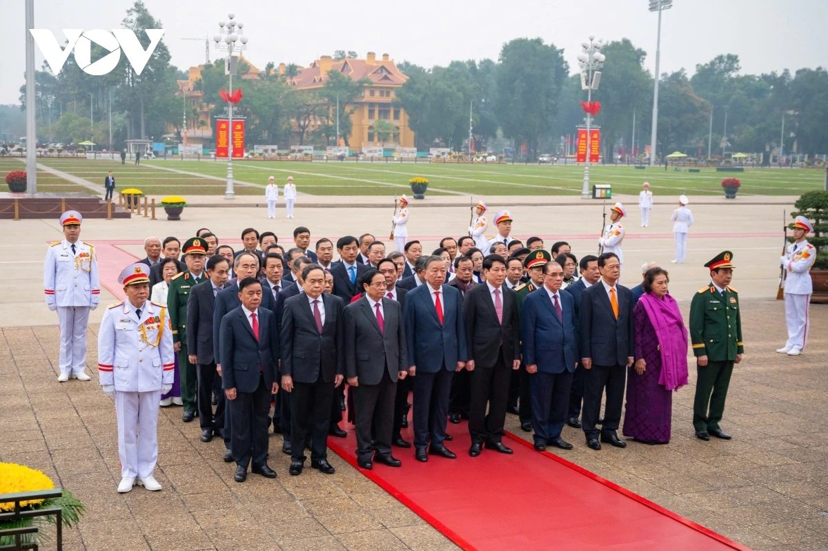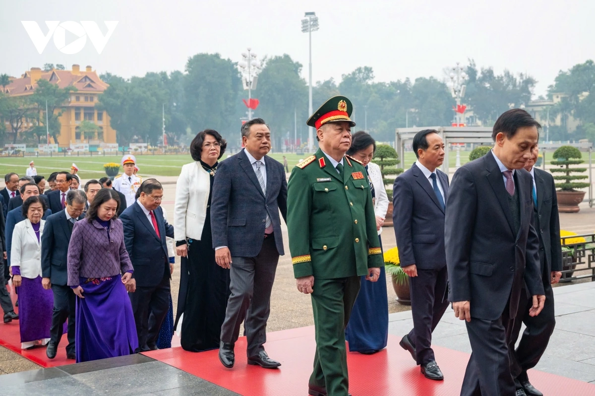 Đoàn đại biểu bày tỏ lòng thành kính, tưởng nhớ công lao to lớn của Chủ tịch Hồ Chí Minh - người sáng lập, lãnh đạo, rèn luyện Đảng Cộng sản Việt Nam, đội tiên phong của giai cấp công nhân, nhân dân lao động và của dân tộc Việt Nam.