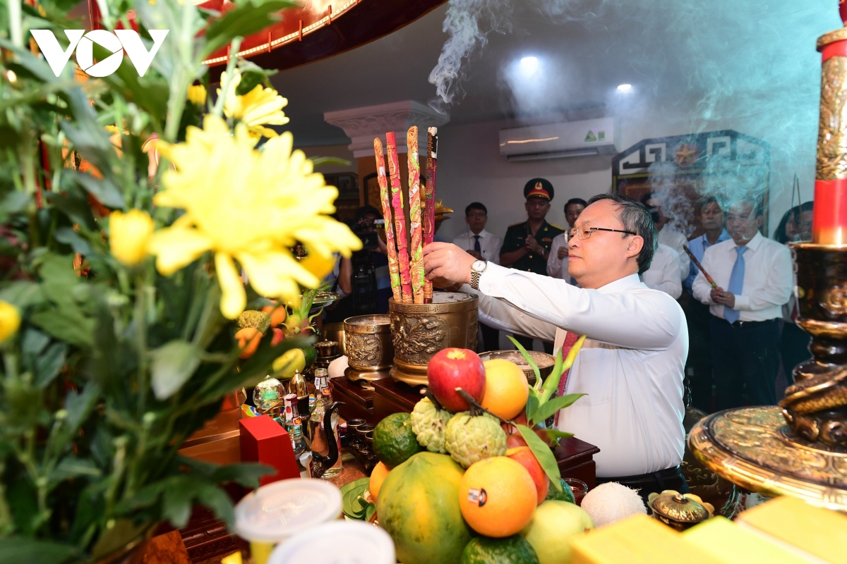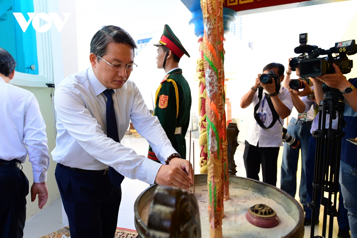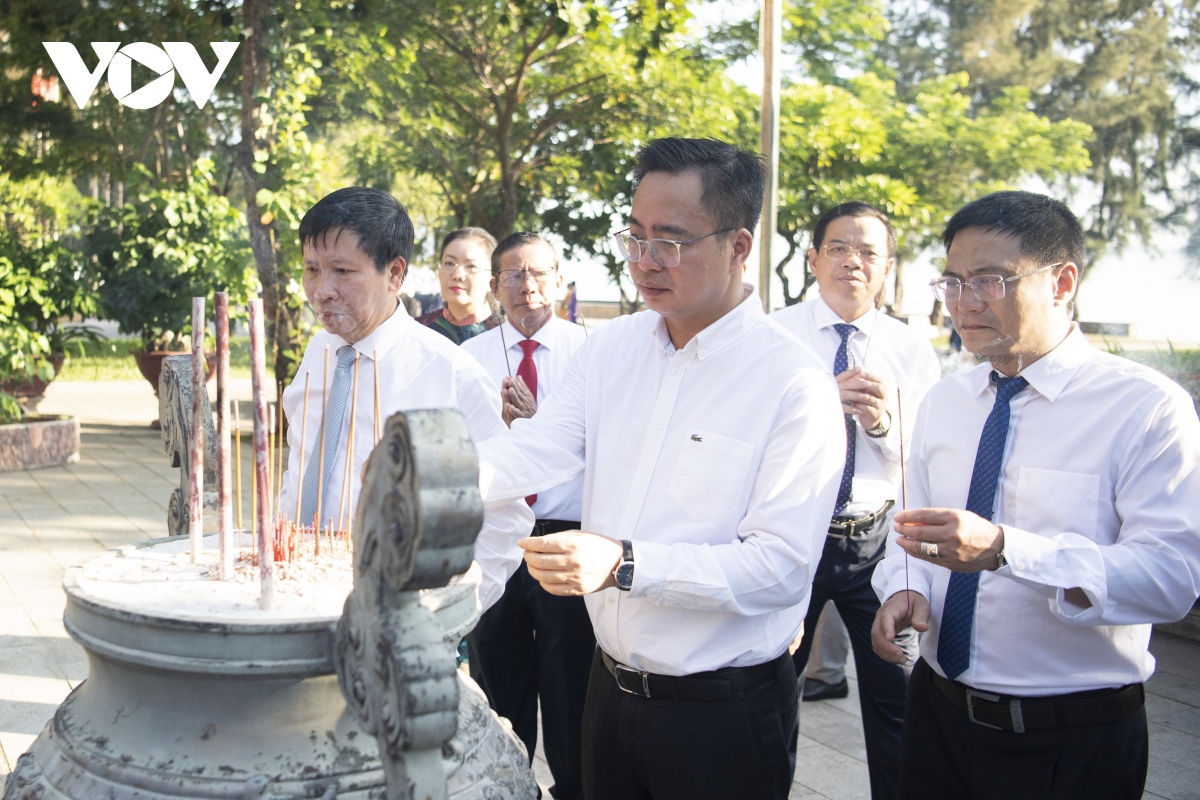 Tổng Giám đốc VOV Đỗ Tiến Sỹ và Bí thư Tỉnh ủy Khánh Hòa Nguyễn Hải Ninh dâng hương.