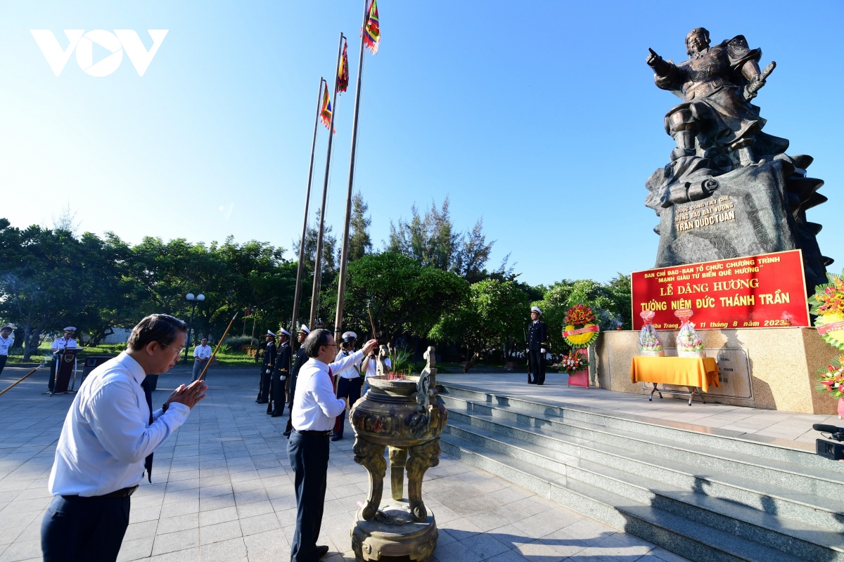 Hướng đến kỷ niệm 78 năm Cách mạng tháng Tám và Quốc khánh 2/9, sáng nay (11/8), Ban Chỉ đạo – Ban Tổ chức Chương trình chính luận nghệ thuật “Mạnh giàu từ biển quê hương”; lãnh đạo tỉnh Khánh Hoà, Nha Trang và đại diện Quân chủng Hải quân đã đến dâng hương, dâng hoa tại Điện thờ liệt sĩ – Tháp Trầm Hương và Tượng đài Trần Hưng Đạo (TP Nha Trang). Các đại biểu dâng hương, dâng hoa tại Điện thờ liệt sĩ – Tháp Trầm Hương. Đoàn do Tổng Giám đốc VOV Đỗ Tiến Sỹ và Bí thư Tỉnh ủy Khánh Hòa Nguyễn Hải Ninh dẫn đầu.