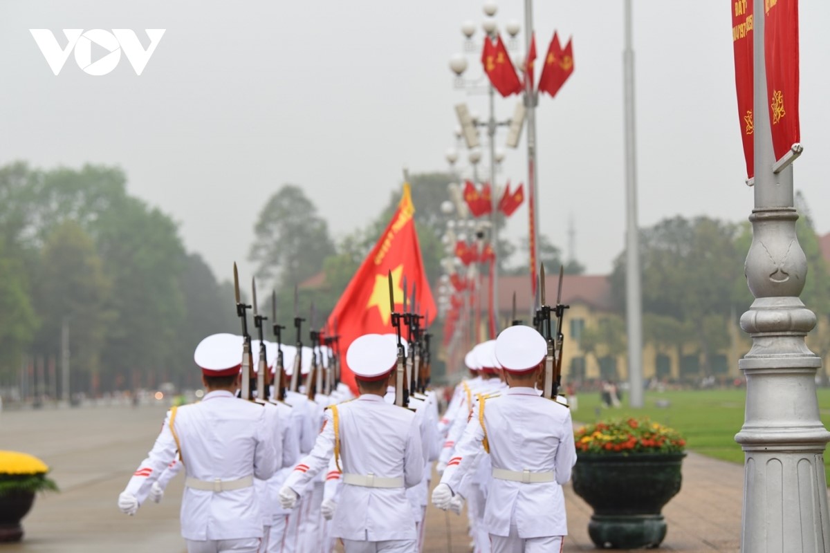 Lễ chào cờ và cử Quốc ca tại Quảng trường Ba Đình. |