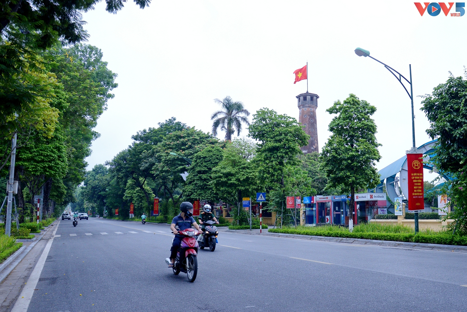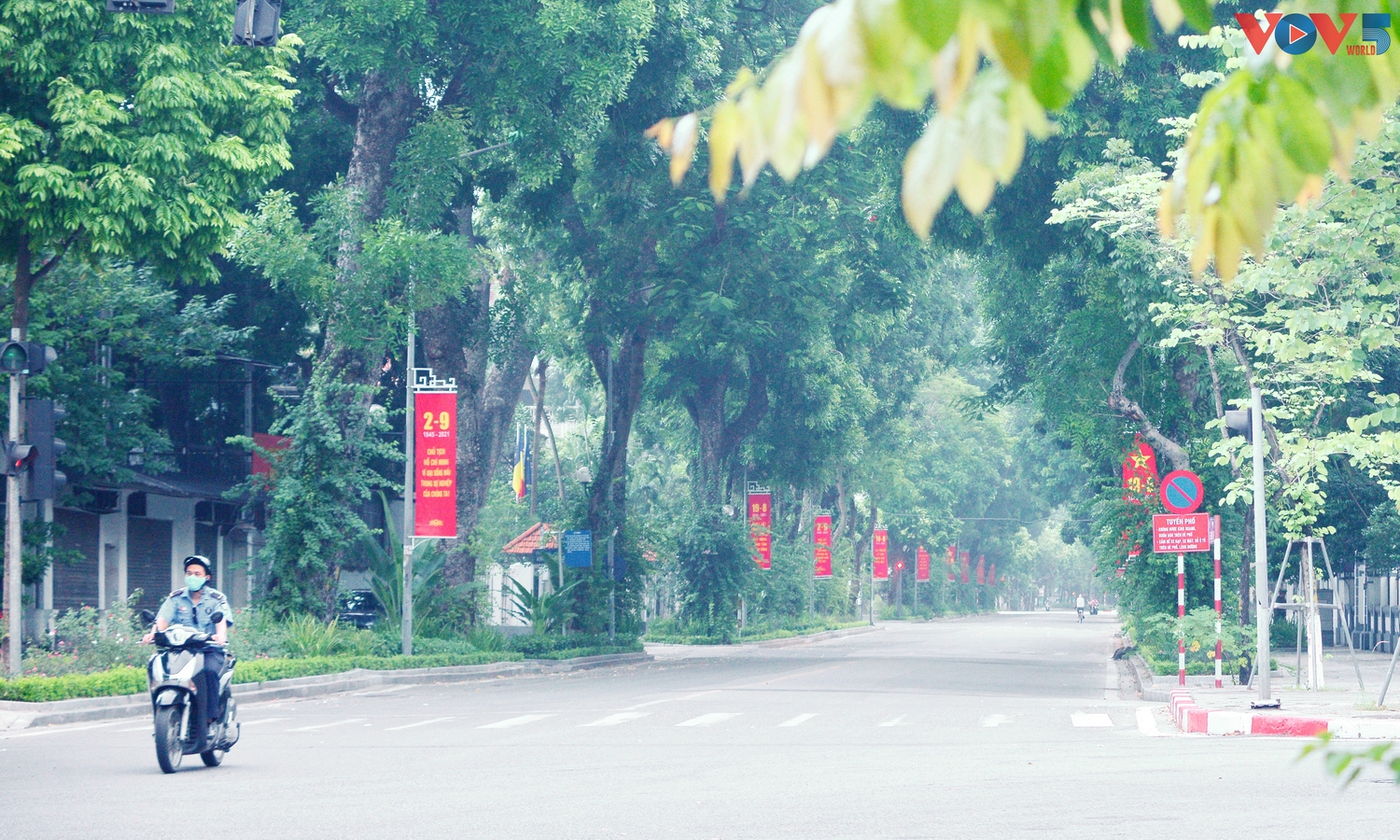 | Dịp Quốc khánh năm nay, vì Hà Nội cùng nhiều tỉnh thành khác đang trong thời gian giãn cách để phòng tránh dịch Covid-19, nên đường phố cũng vắng lặng và không nhiều cờ hoa như ngày Quốc khánh những năm khác |
