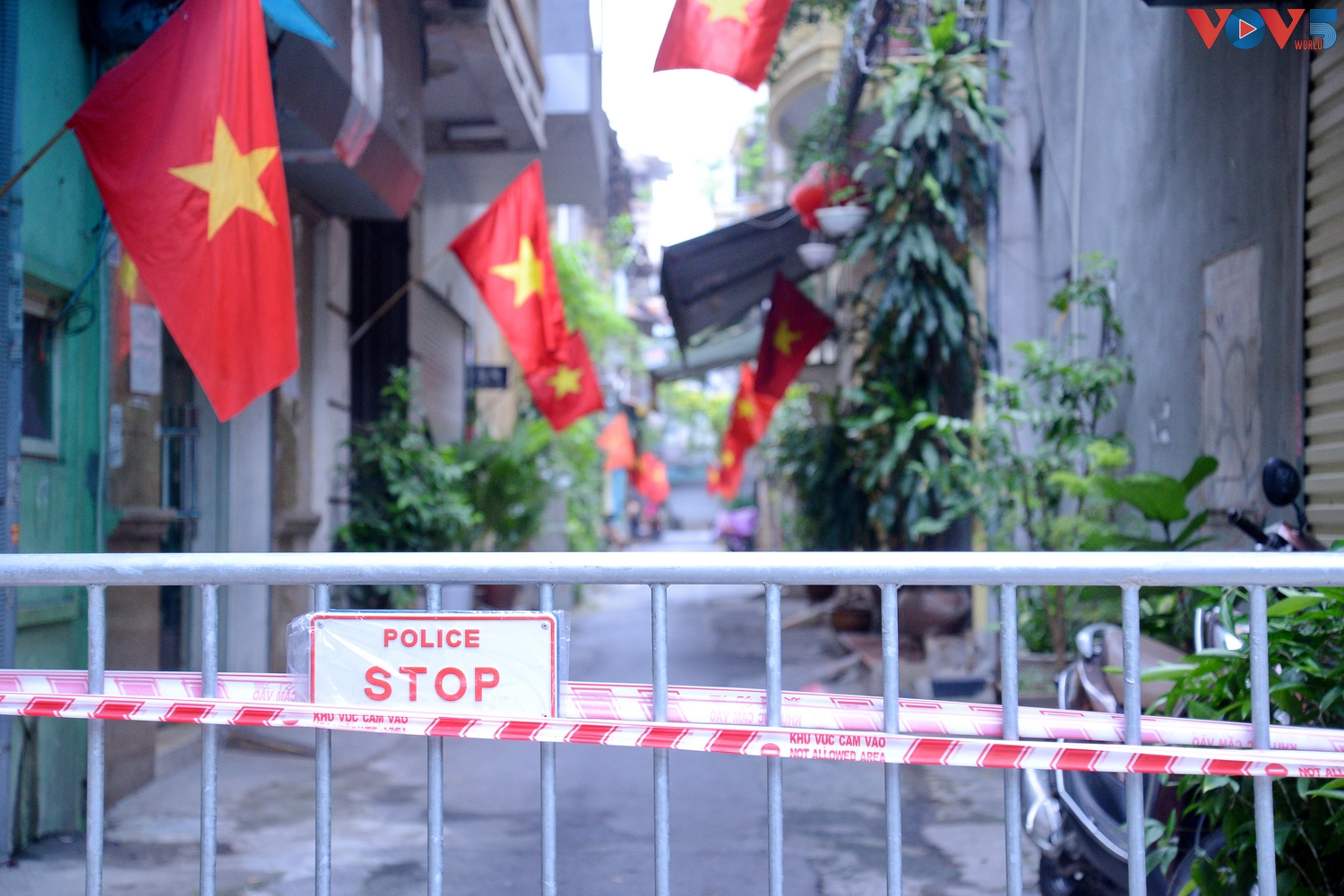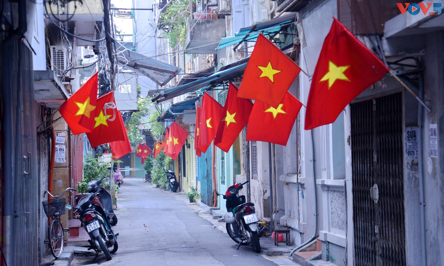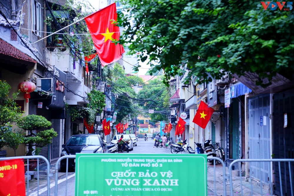 | Trong những vùng giãn cách của Hà Nội vẫn rực đỏ lên sắc cờ, chào đón kỷ niệm 76 năm Cách mạng Tháng Tám (19/8/1945 - 19/8/2021) và Quốc khánh nước CHXHCN Việt Nam (2/9/1945 - 2/9/2021). |