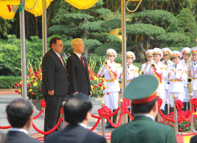 | Tổng Bí thư Nguyễn Phú Trọng chủ trì lễ đón chính thức Tổng Bí thư, Chủ tịch nước Lào Bounnhang Volachith. |